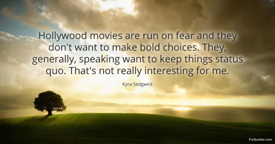 Sedgwick, Kyra. (2026, January 17). Hollywood movies are run on fear and they don't want to make bold choices. They, generally, speaking want to keep things status quo. That's not really interesting for me. FixQuotes. https://fixquotes.com/quotes/hollywood-movies-are-run-on-fear-and-they-dont-54409/
