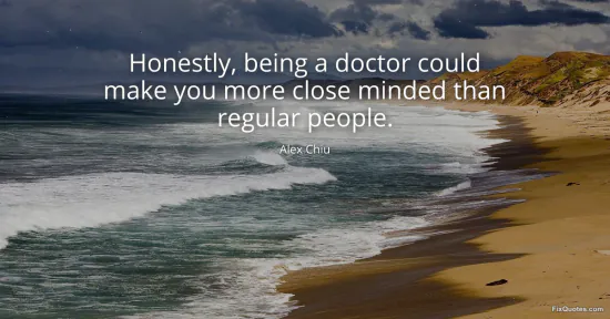Chiu, Alex. "Honestly, being a doctor could make you more close minded than regular people." FixQuotes. January 15, 2026. https://fixquotes.com/quotes/honestly-being-a-doctor-could-make-you-more-close-125962/.