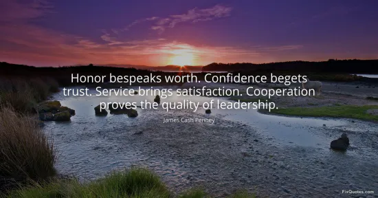 "Honor bespeaks worth. Confidence begets trust. Service brings satisfaction. Cooperation proves the quality of leadership"
