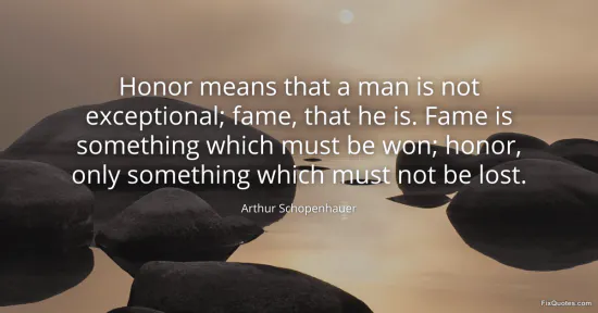 Schopenhauer, Arthur. "Honor means that a man is not exceptional; fame, that he is. Fame is something which must be won; honor, only something which must not be lost." FixQuotes. January 17, 2026. https://fixquotes.com/quotes/honor-means-that-a-man-is-not-exceptional-fame-28446/.