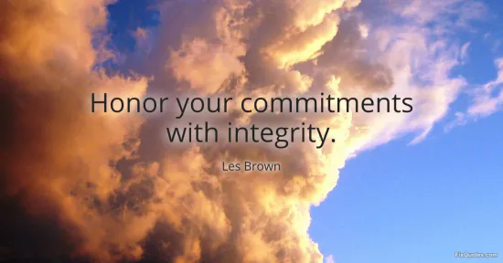 “Honor your commitments with integrity” is Les Brown at his most instructive: a pressure-tested mantra for people trying to build a life on more than vibes. Brown’s motivational brand was forged in the self-improvement era where success is framed as a repeatable system, and this line plays like a compact operating manual for trust. It’s not about being “nice.” It’s about being bankable.