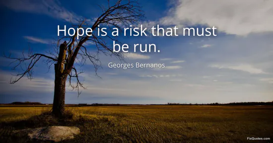 Bernanos, Georges. "Hope is a risk that must be run." FixQuotes. January 15, 2026. https://fixquotes.com/quotes/hope-is-a-risk-that-must-be-run-8790/.