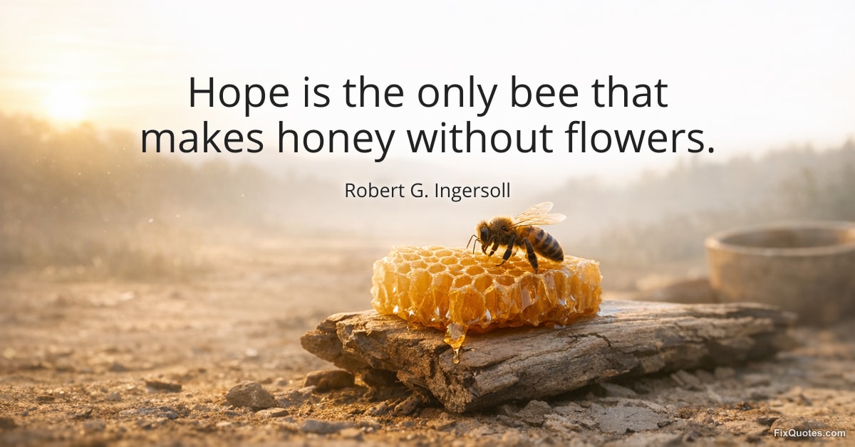 Ingersoll, Robert G. "Hope is the only bee that makes honey without flowers." FixQuotes. February 7, 2026. https://fixquotes.com/quotes/hope-is-the-only-bee-that-makes-honey-without-163551/.