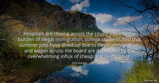 Gallegly, Elton. (2026, January 17). Hospitals are closing across the country due to the burden of illegal immigration, college students find that summer jobs have dried up due to illegal immigration, and wages across the board are depressed by the overwhelming influx of cheap and illegal labor. FixQuotes. https://fixquotes.com/quotes/hospitals-are-closing-across-the-country-due-to-61239/