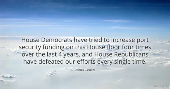 Cardoza, Dennis. "House Democrats have tried to increase port security funding on this House floor four times over the last 4 years, and House Republicans have defeated our efforts every single time." FixQuotes. January 17, 2026. https://fixquotes.com/quotes/house-democrats-have-tried-to-increase-port-47424/.