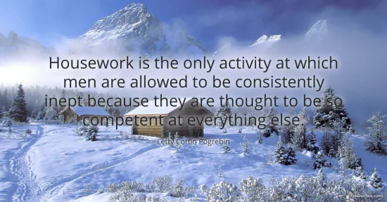 "Housework is the only activity at which men are allowed to be consistently inept because they are thought to be so competent at everything else"