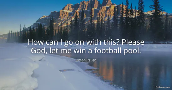 Raven, Simon. (2026, January 17). How can I go on with this? Please God, let me win a football pool. FixQuotes. https://fixquotes.com/quotes/how-can-i-go-on-with-this-please-god-let-me-win-a-75770/
