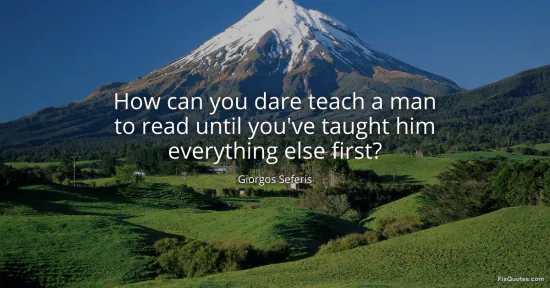 Seferis, Giorgos. (n.d.). How can you dare teach a man to read until you've taught him everything else first? FixQuotes. https://fixquotes.com/quotes/how-can-you-dare-teach-a-man-to-read-until-youve-48520/