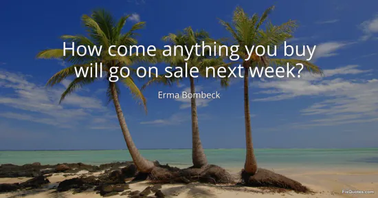 Bombeck, Erma. (2026, January 17). How come anything you buy will go on sale next week? FixQuotes. https://fixquotes.com/quotes/how-come-anything-you-buy-will-go-on-sale-next-31121/