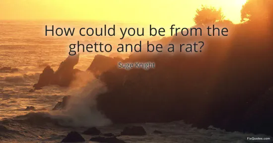 Knight, Suge. (2026, January 17). How could you be from the ghetto and be a rat? FixQuotes. https://fixquotes.com/quotes/how-could-you-be-from-the-ghetto-and-be-a-rat-58815/