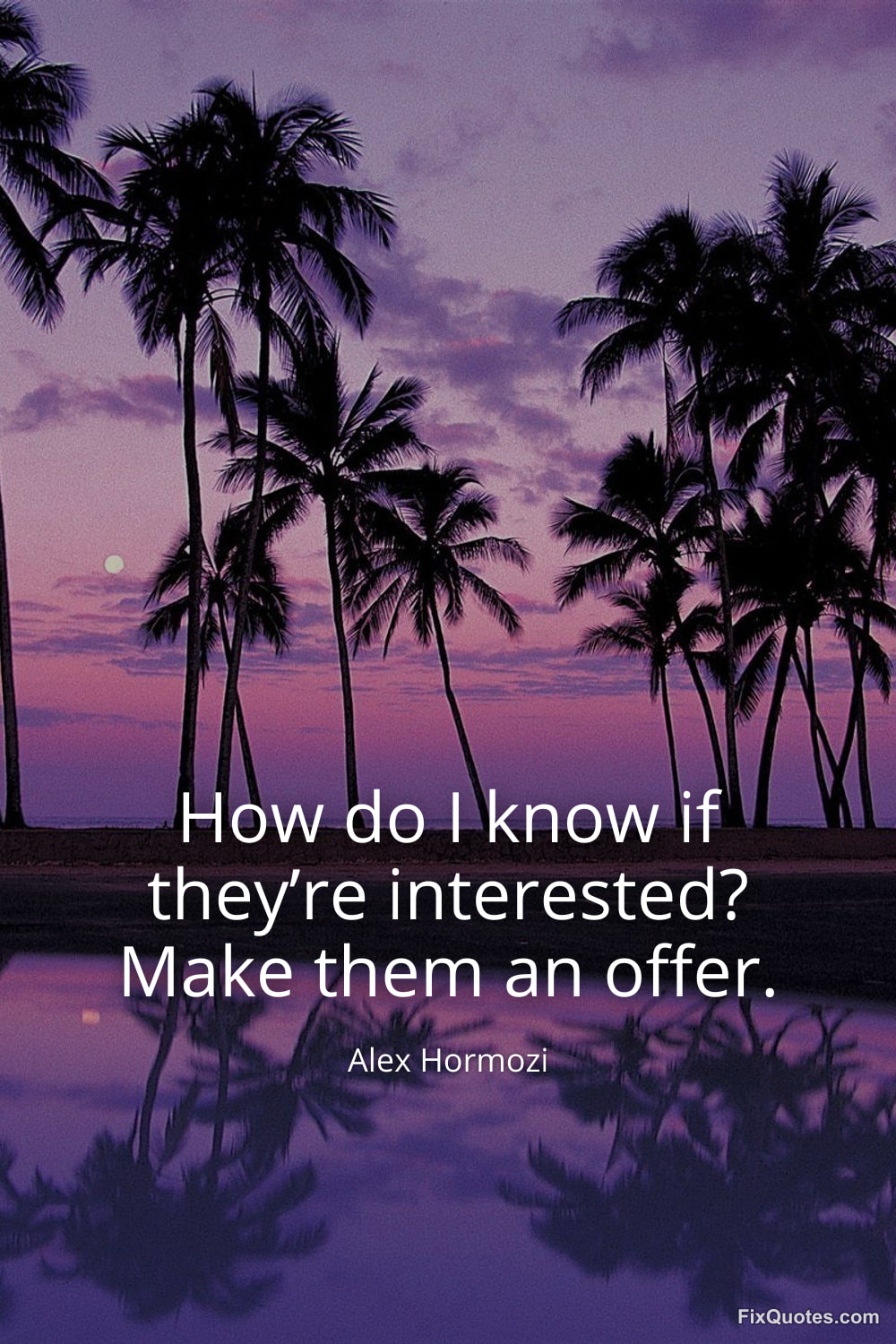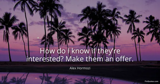 Hormozi, Alex. (2026, January 13). How do I know if they’re interested? Make them an offer. FixQuotes. https://fixquotes.com/quotes/how-do-i-know-if-theyre-interested-make-them-an-184008/