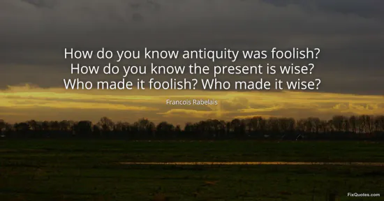 Rabelais, Francois. "How do you know antiquity was foolish? How do you know the present is wise? Who made it foolish? Who made it wise?" FixQuotes. January 15, 2026. https://fixquotes.com/quotes/how-do-you-know-antiquity-was-foolish-how-do-you-146014/.