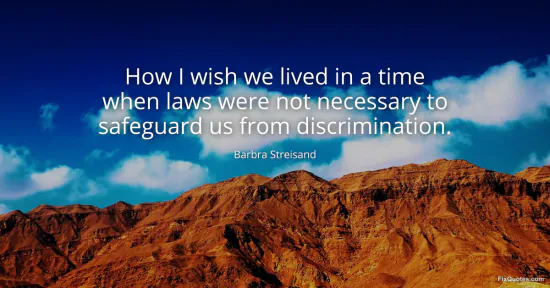 Streisand, Barbra. (2026, January 15). How I wish we lived in a time when laws were not necessary to safeguard us from discrimination. FixQuotes. https://fixquotes.com/quotes/how-i-wish-we-lived-in-a-time-when-laws-were-not-38556/