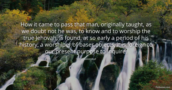 Greenleaf, Simon. (2026, January 17). How it came to pass that man, originally taught, as we doubt not he was, to know and to worship the true Jehovah, is found, at so early a period of his history, a worshiper of baser objects, it is foreign to our present purpose to inquire. FixQuotes. https://fixquotes.com/quotes/how-it-came-to-pass-that-man-originally-taught-as-77665/