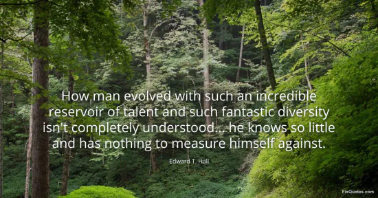 Hall, Edward T. (2026, January 16). How man evolved with such an incredible reservoir of talent and such fantastic diversity isn't completely understood... he knows so little and has nothing to measure himself against. FixQuotes. https://fixquotes.com/quotes/how-man-evolved-with-such-an-incredible-reservoir-123886/