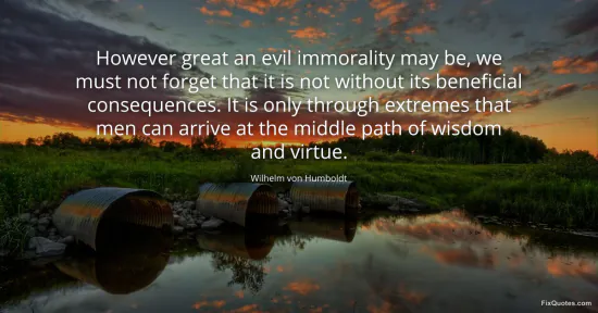 Humboldt, Wilhelm von. "However great an evil immorality may be, we must not forget that it is not without its beneficial consequences. It is only through extremes that men can arrive at the middle path of wisdom and virtue." FixQuotes. January 16, 2026. https://fixquotes.com/quotes/however-great-an-evil-immorality-may-be-we-must-94113/.