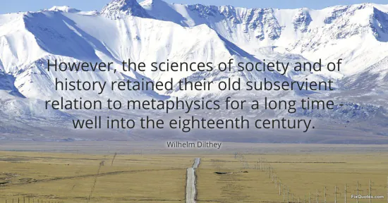Dilthey, Wilhelm. (2026, January 15). However, the sciences of society and of history retained their old subservient relation to metaphysics for a long time - well into the eighteenth century. FixQuotes. https://fixquotes.com/quotes/however-the-sciences-of-society-and-of-history-148235/
