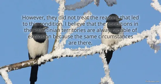 Nasrallah, Hassan. (2026, January 18). However, they did not treat the reasons that led to this condition. I believe that the conditions in the Palestinian territories are alway capable of explosion because the same circumstances are there. FixQuotes. https://fixquotes.com/quotes/however-they-did-not-treat-the-reasons-that-led-18898/