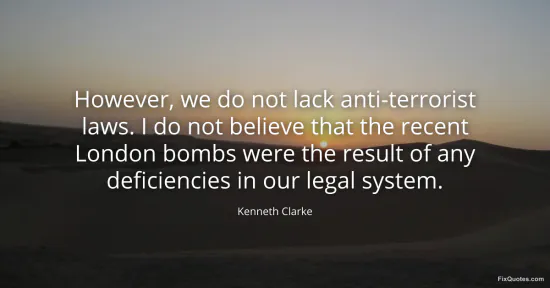 Clarke, Kenneth. (2026, January 17). However, we do not lack anti-terrorist laws. I do not believe that the recent London bombs were the result of any deficiencies in our legal system. FixQuotes. https://fixquotes.com/quotes/however-we-do-not-lack-anti-terrorist-laws-i-do-81016/
