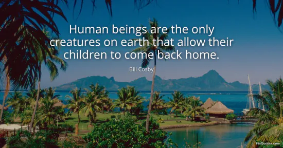 Cosby, Bill. "Human beings are the only creatures on earth that allow their children to come back home." FixQuotes. January 15, 2026. https://fixquotes.com/quotes/human-beings-are-the-only-creatures-on-earth-that-14304/.
