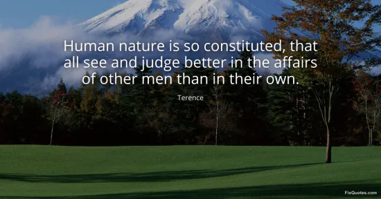 Terence. "Human nature is so constituted, that all see and judge better in the affairs of other men than in their own." FixQuotes. January 16, 2026. https://fixquotes.com/quotes/human-nature-is-so-constituted-that-all-see-and-112893/.