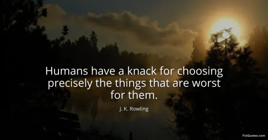 Rowling, J. K. (2026, January 17). Humans have a knack for choosing precisely the things that are worst for them. FixQuotes. https://fixquotes.com/quotes/humans-have-a-knack-for-choosing-precisely-the-31644/