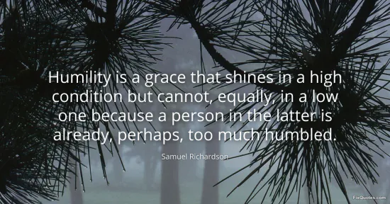 Richardson, Samuel. (2026, January 18). Humility is a grace that shines in a high condition but cannot, equally, in a low one because a person in the latter is already, perhaps, too much humbled. FixQuotes. https://fixquotes.com/quotes/humility-is-a-grace-that-shines-in-a-high-3216/