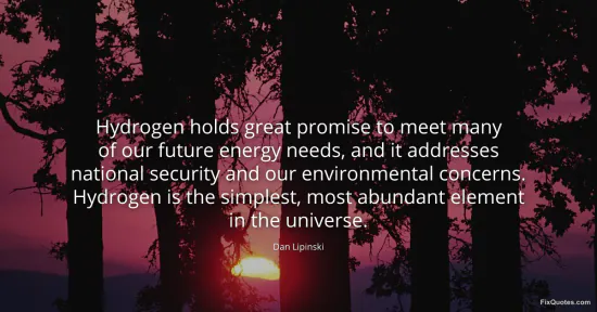 Lipinski, Dan. (2026, January 17). Hydrogen holds great promise to meet many of our future energy needs, and it addresses national security and our environmental concerns. Hydrogen is the simplest, most abundant element in the universe. FixQuotes. https://fixquotes.com/quotes/hydrogen-holds-great-promise-to-meet-many-of-our-50012/