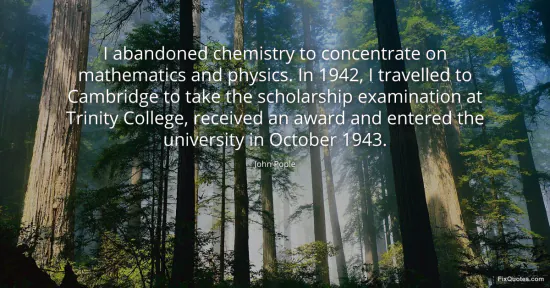 Pople, John. "I abandoned chemistry to concentrate on mathematics and physics. In 1942, I travelled to Cambridge to take the scholarship examination at Trinity College, received an award and entered the university in October 1943." FixQuotes. January 17, 2026. https://fixquotes.com/quotes/i-abandoned-chemistry-to-concentrate-on-74965/.