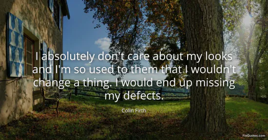 Firth, Colin. (2026, January 17). I absolutely don't care about my looks and I'm so used to them that I wouldn't change a thing. I would end up missing my defects. FixQuotes. https://fixquotes.com/quotes/i-absolutely-dont-care-about-my-looks-and-im-so-54461/