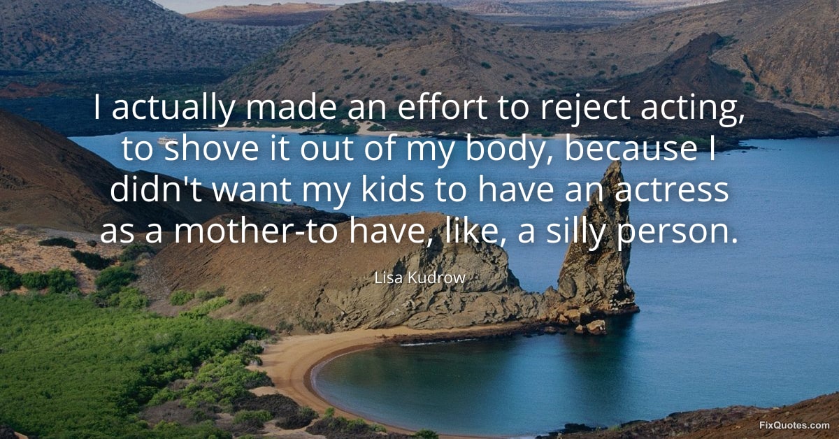 Kudrow, Lisa. (2026, January 16). I actually made an effort to reject acting, to shove it out of my body, because I didn't want my kids to have an actress as a mother-to have, like, a silly person. FixQuotes. https://fixquotes.com/quotes/i-actually-made-an-effort-to-reject-acting-to-92291/