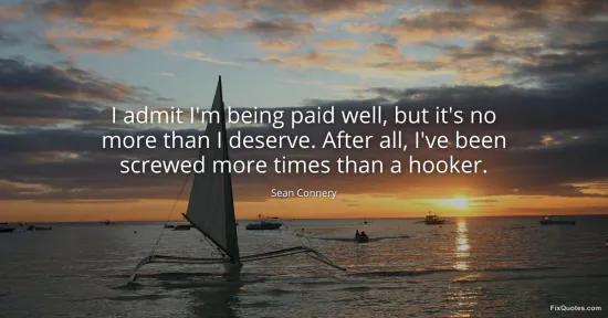 Connery, Sean. (2026, January 16). I admit I'm being paid well, but it's no more than I deserve. After all, I've been screwed more times than a hooker. FixQuotes. https://fixquotes.com/quotes/i-admit-im-being-paid-well-but-its-no-more-than-i-98745/