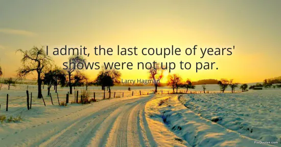 Hagman, Larry. (2026, February 18). I admit, the last couple of years' shows were not up to par. FixQuotes. https://fixquotes.com/quotes/i-admit-the-last-couple-of-years-shows-were-not-69971/