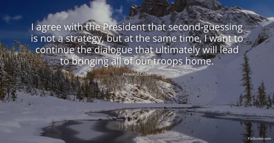 Coble, Howard. "I agree with the President that second-guessing is not a strategy, but at the same time, I want to continue the dialogue that ultimately will lead to bringing all of our troops home." FixQuotes. January 17, 2026. https://fixquotes.com/quotes/i-agree-with-the-president-that-second-guessing-72900/.