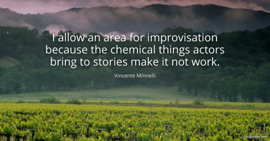 Minnelli, Vincente. (2026, January 16). I allow an area for improvisation because the chemical things actors bring to stories make it not work. FixQuotes. https://fixquotes.com/quotes/i-allow-an-area-for-improvisation-because-the-130240/