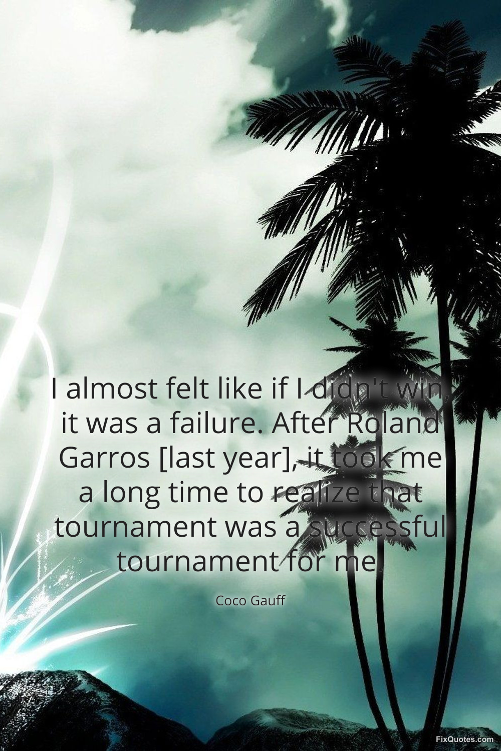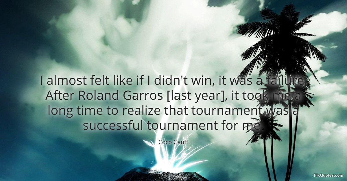 Gauff, Coco. (2026, March 17). I almost felt like if I didn't win, it was a failure. After Roland Garros [last year], it took me a long time to realize that tournament was a successful tournament for me. FixQuotes. https://fixquotes.com/quotes/i-almost-felt-like-if-i-didnt-win-it-was-a-186132/