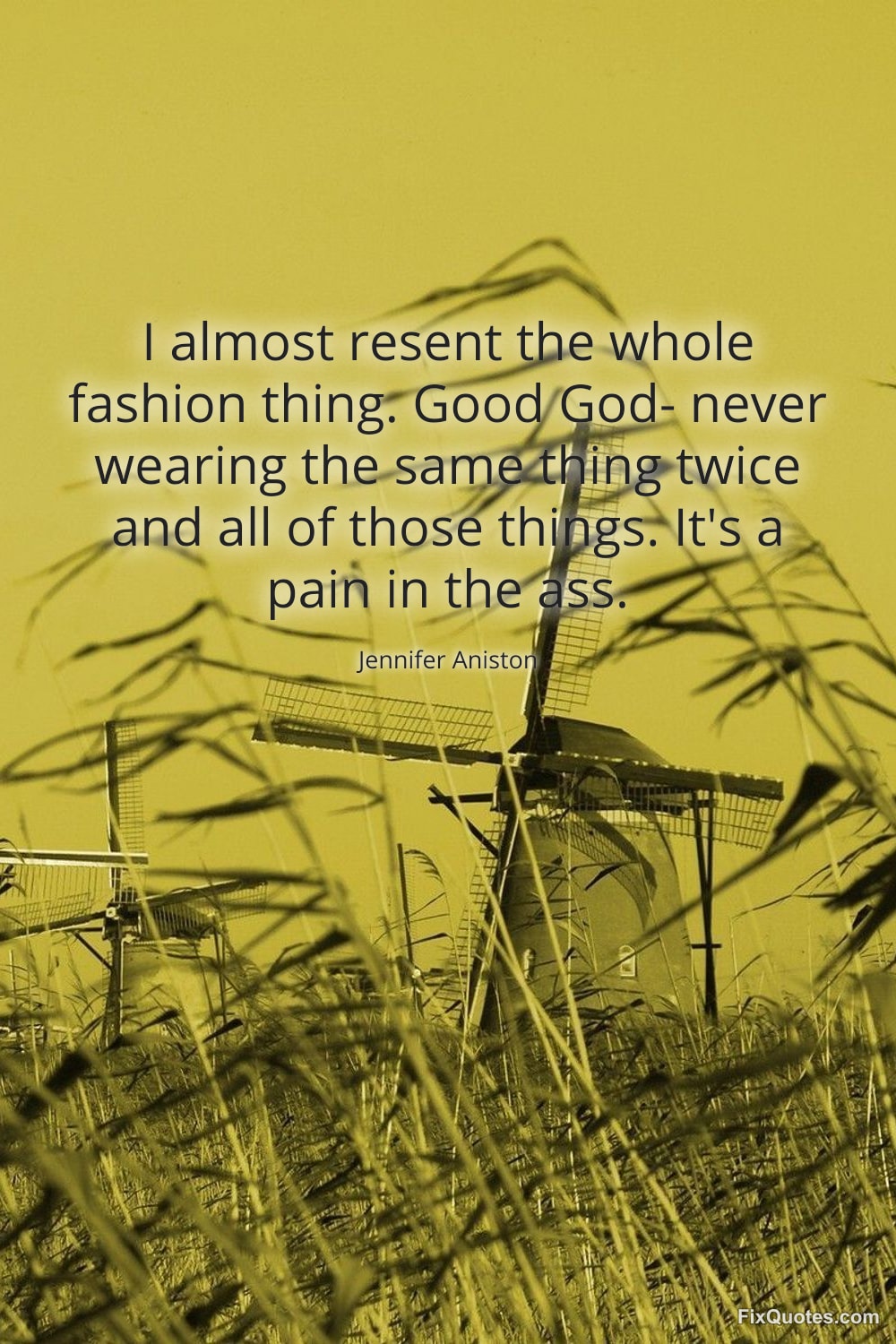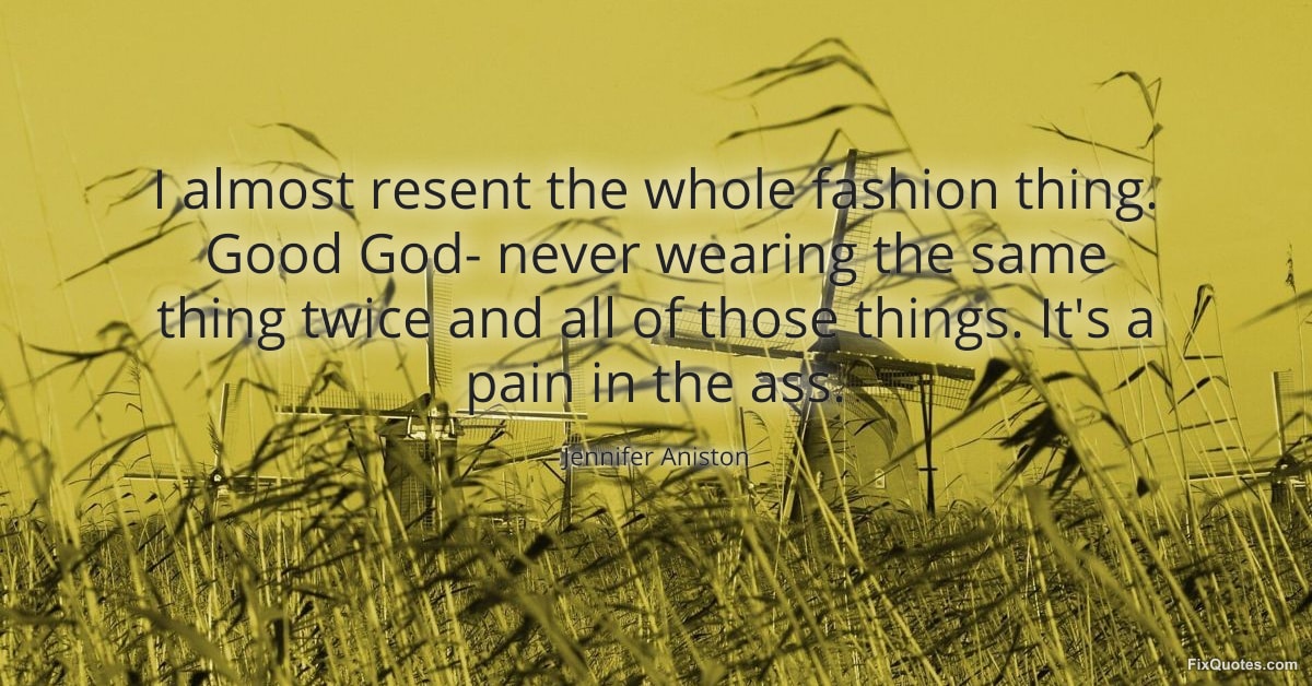 Aniston, Jennifer. (2026, January 17). I almost resent the whole fashion thing. Good God- never wearing the same thing twice and all of those things. It's a pain in the ass. FixQuotes. https://fixquotes.com/quotes/i-almost-resent-the-whole-fashion-thing-good-god-80280/