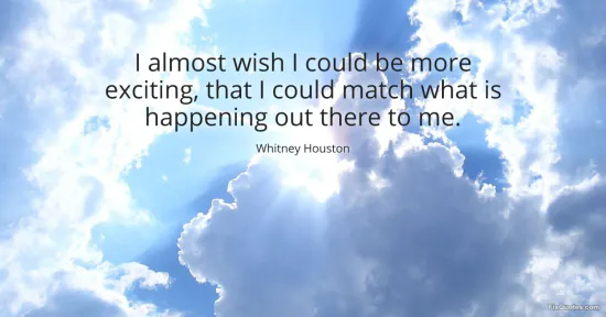 Houston, Whitney. (2026, January 18). I almost wish I could be more exciting, that I could match what is happening out there to me. FixQuotes. https://fixquotes.com/quotes/i-almost-wish-i-could-be-more-exciting-that-i-21907/