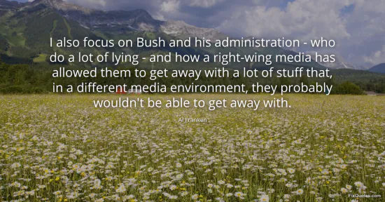 Franken, Al. (2026, January 17). I also focus on Bush and his administration - who do a lot of lying - and how a right-wing media has allowed them to get away with a lot of stuff that, in a different media environment, they probably wouldn't be able to get away with. FixQuotes. https://fixquotes.com/quotes/i-also-focus-on-bush-and-his-administration-who-29541/
