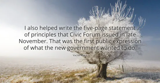 There is a quiet power move in the way Vaclav Klaus frames this: not as a grand speech, but as paperwork. A "five-page statement of principles" sounds bland by design, and that’s precisely the point. In post-1989 Central Europe, legitimacy wasn’t won only in the streets; it was consolidated in documents that could be circulated, cited, and treated as proof that a new order had something sturdier than revolutionary adrenaline. Klaus is reminding you that the real hinge of transition is often administrative: whoever drafts the principles gets to define what counts as reform.