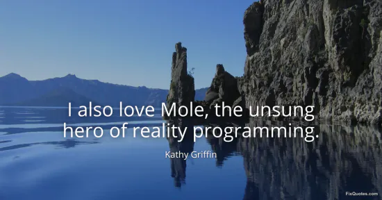 Griffin, Kathy. (2026, January 16). I also love Mole, the unsung hero of reality programming. FixQuotes. https://fixquotes.com/quotes/i-also-love-mole-the-unsung-hero-of-reality-103875/