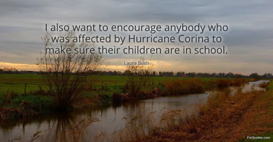 Bush, Laura. (2026, January 18). I also want to encourage anybody who was affected by Hurricane Corina to make sure their children are in school. FixQuotes. https://fixquotes.com/quotes/i-also-want-to-encourage-anybody-who-was-affected-19320/