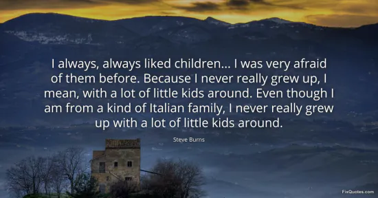 Burns, Steve. "I always, always liked children... I was very afraid of them before. Because I never really grew up, I mean, with a lot of little kids around. Even though I am from a kind of Italian family, I never really grew up with a lot of little kids around." FixQuotes. Accessed February 2, 2026. https://fixquotes.com/quotes/i-always-always-liked-children-i-was-very-afraid-116748/.