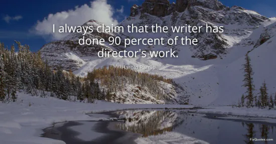 Ramis, Harold. (2026, January 17). I always claim that the writer has done 90 percent of the director's work. FixQuotes. https://fixquotes.com/quotes/i-always-claim-that-the-writer-has-done-90-54337/