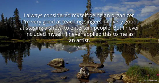 Turner, Ike. (2026, January 16). I always considered myself being an organizer. I'm very good at teaching singers, I'm very good at staging a show, to entertain people. But I never included myself. I never applied this to me as an artist. FixQuotes. https://fixquotes.com/quotes/i-always-considered-myself-being-an-organizer-im-90930/