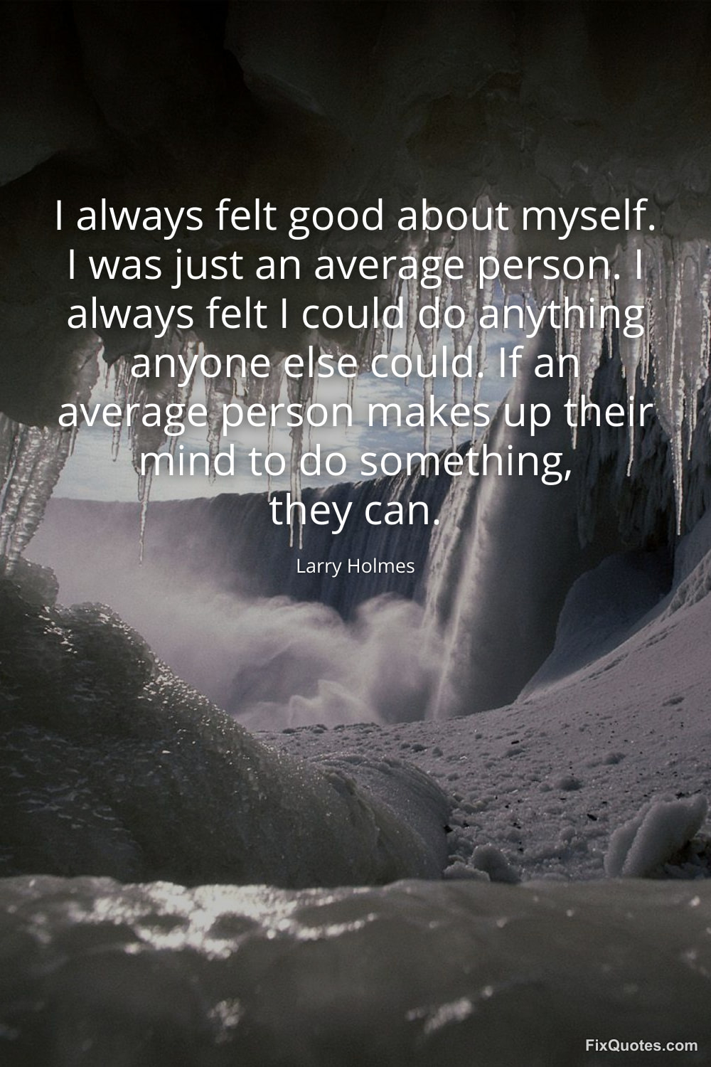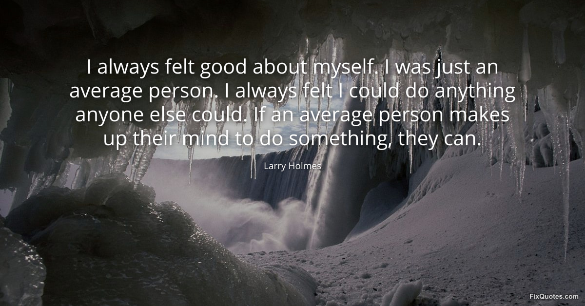 Holmes, Larry. "I always felt good about myself. I was just an average person. I always felt I could do anything anyone else could. If an average person makes up their mind to do something, they can." FixQuotes. January 16, 2026. https://fixquotes.com/quotes/i-always-felt-good-about-myself-i-was-just-an-96641/.
