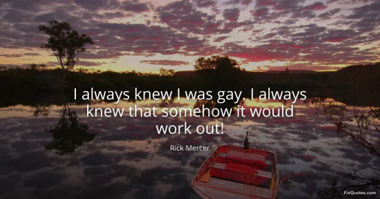 Mercer, Rick. (2026, February 20). I always knew I was gay. I always knew that somehow it would work out! FixQuotes. https://fixquotes.com/quotes/i-always-knew-i-was-gay-i-always-knew-that-7823/