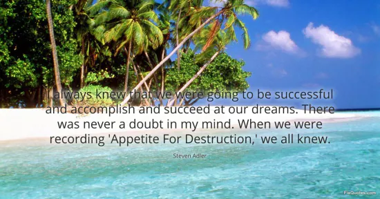 Adler, Steven. "I always knew that we were going to be successful and accomplish and succeed at our dreams. There was never a doubt in my mind. When we were recording 'Appetite For Destruction,' we all knew." FixQuotes. January 15, 2026. https://fixquotes.com/quotes/i-always-knew-that-we-were-going-to-be-successful-151458/.