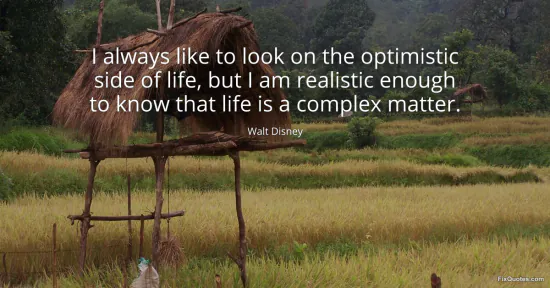 Disney, Walt. (2026, January 18). I always like to look on the optimistic side of life, but I am realistic enough to know that life is a complex matter. FixQuotes. https://fixquotes.com/quotes/i-always-like-to-look-on-the-optimistic-side-of-15035/