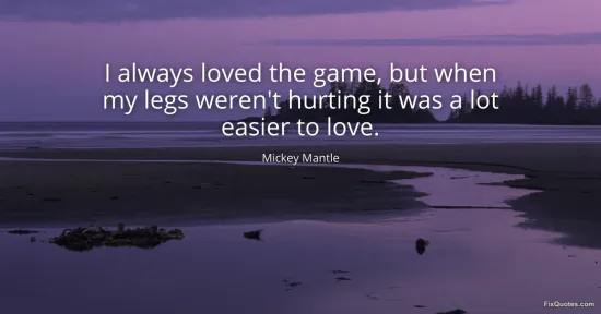 Mantle, Mickey. (2026, January 16). I always loved the game, but when my legs weren't hurting it was a lot easier to love. FixQuotes. https://fixquotes.com/quotes/i-always-loved-the-game-but-when-my-legs-werent-93448/